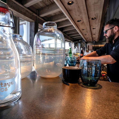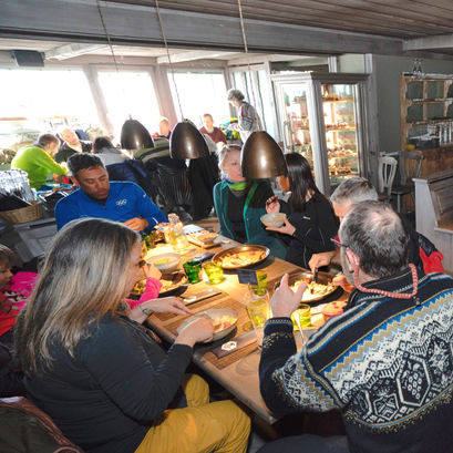 Les producteurs locaux sont largement privilégiés, que ce soient les agriculteurs pour la viande et les légumes, mais aussi les vignerons de la région. Il est aussi possible de trouver ici des grands crus, mais aussi des très bons vins locaux, à prix accessible. Sur sa terrasse panoramique, prennent place des sessions d'après-skis mémorables et par tous les temps.